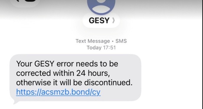Ο Οργανισμός Ασφάλισης Υγείας (ΟΑΥ) ενημερώνει τους δικαιούχους του ΓεΣΥ ότι συνεχίζουν να παρατηρούνται περιστατικά αποστολής ψευδών και κακόβουλων γραπτών μηνυμάτων SMS σε κινητά τηλέφωνα, τα οποία εμφανίζονται ότι προέρχονται από το ΓεΣΥ, χρησιμοποιώντας το όνομα GESY.