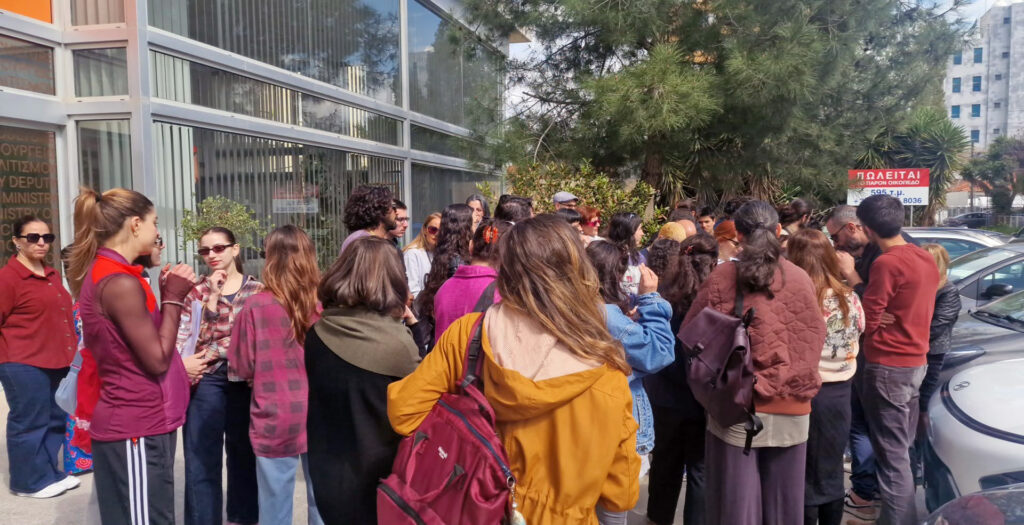 Την ώρα που περίπου 30–40 δημιουργοί και άνθρωποι του πολιτισμού συγκεντρώνονταν έξω από τα γραφεία στην οδό Ιφιγενείας, η Υφυπουργός Πολιτισμού και ο Γενικός Διευθυντής βρίσκονταν στη Λάρνακα για επαγγελματικό γεύμα της ηγεσίας του Υφυπουργείου– μια συγκυρία που δεν πέρασε απαρατήρητη από τους παρευρισκόμενους.