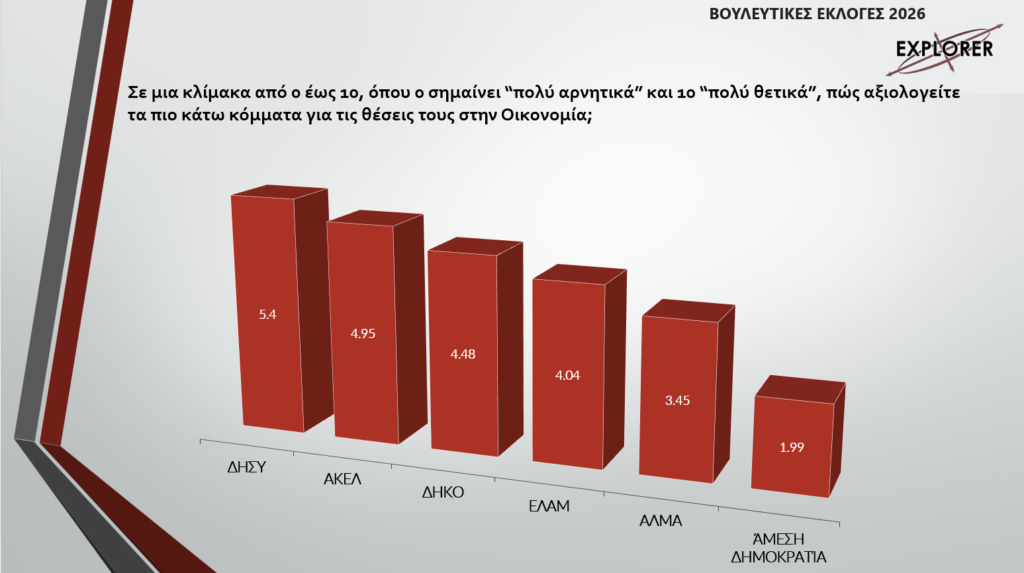 Οικονομία: ΔΗΣΥ 5,4, ΑΚΕΛ 4,95, ΕΛΑΜ 4,04, ΔΗΚΟ 4,48, ΑΛΜΑ 3,45 και ΑΜ.ΔΗ. 1,99.