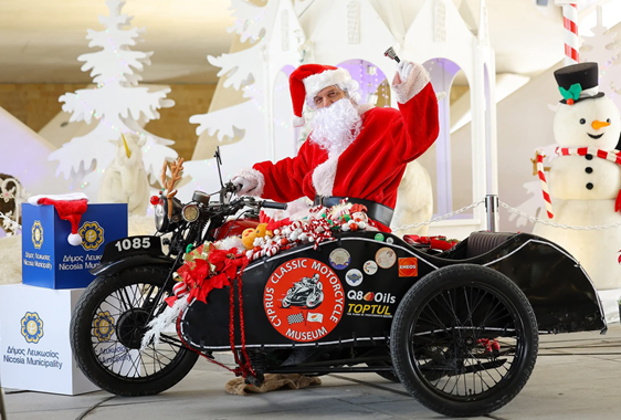 Πριν φύγω, ο οικοδεσπότης μου προτείνει μια βόλτα με το όχημα του Άη Βασίλη, καθώς, από το 2007, σε συνεργασία με τον Δήμο Λευκωσίας, τις ημέρες των Χριστουγέννων φορεί κόκκινη στολή και γενειάδα και με διαμορφωμένη μοτοσικλέτα τριγυρνά στην Παλιά Λευκωσία, εμπνέοντας χαρά και χαμόγελα σε παιδιά και μεγάλους. Αφού απαντώ καταφατικά, ως επιβάτης γίνομαι θεάτρια της αυθόρμητης, πρόδηλης χαράς. Διότι, παρά τα όσα μας ταλανίζουν, «la vita è bella» και η χαρά ταιριάζει στα Χριστούγεννα. Αταίριαστες, σαφώς, οι θυσίες στον «Μολώχ» της ασφάλτου.