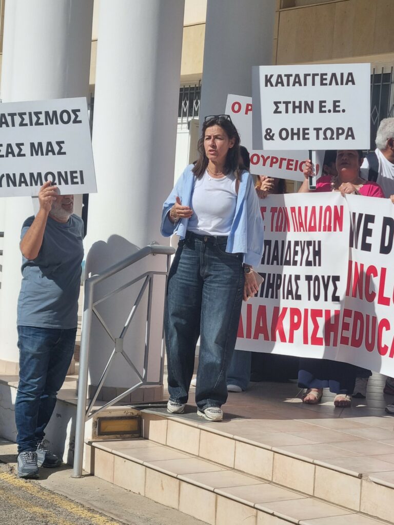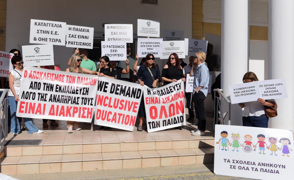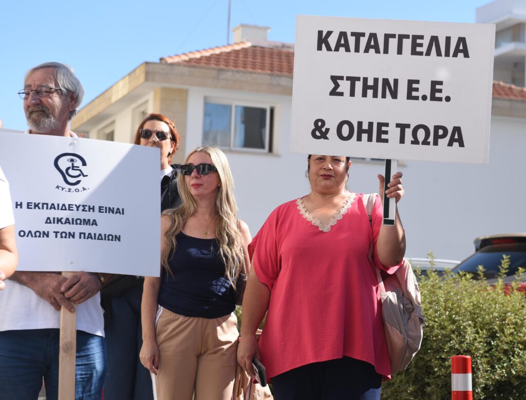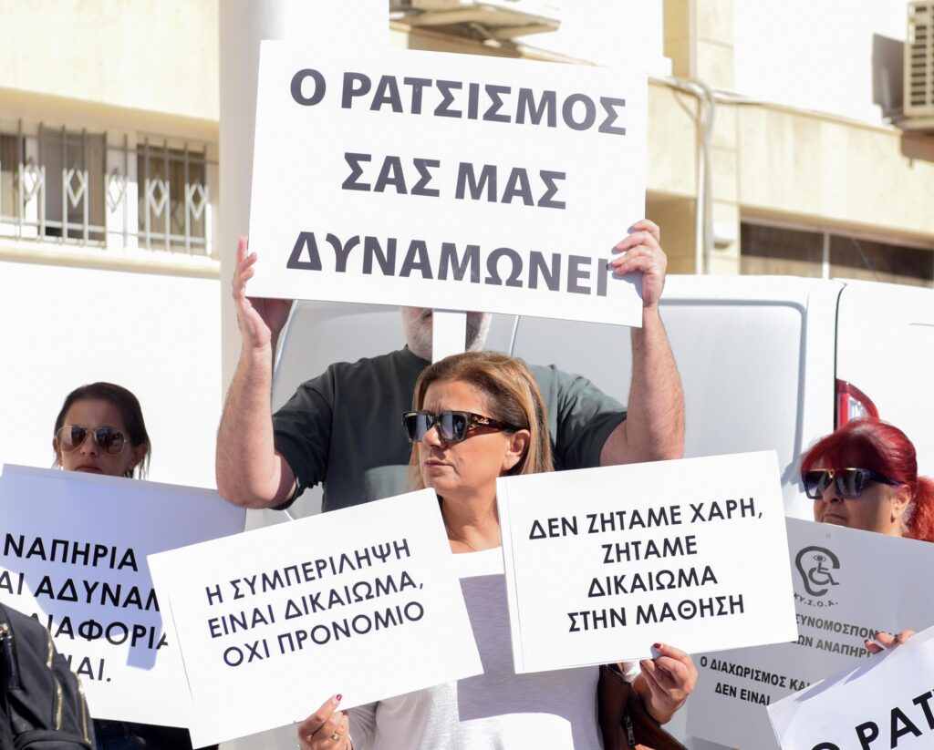 Εκδήλωση διαμαρτυρίας για τα δικαιώματα παιδιών με αναπηρία πραγματοποιείται σήμερα, Δευτέρα 27 Οκτωβρίου, έξω από το Υπουργείο Παιδείας στη Λευκωσία. Τη διαμαρτυρία διοργανώνουν ο Σύνδεσμος Αγκαλιά Ελπίδας, η Παγκύπρια Οργάνωση Τυφλών και ο Σύνδεσμος Παιδιών με ΔΕΠΥ.
