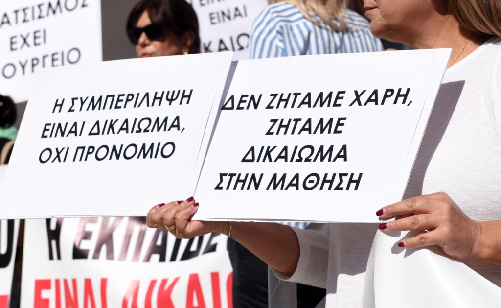 Οι συμμετέχοντες συγκεντρώθηκαν γύρω στις 10:00 το πρωί μπροστά από το Υπουργείο, ζητώντας υποστήριξη και καλύτερες συνθήκες στην εκπαίδευση για τα παιδιά με αναπηρία.