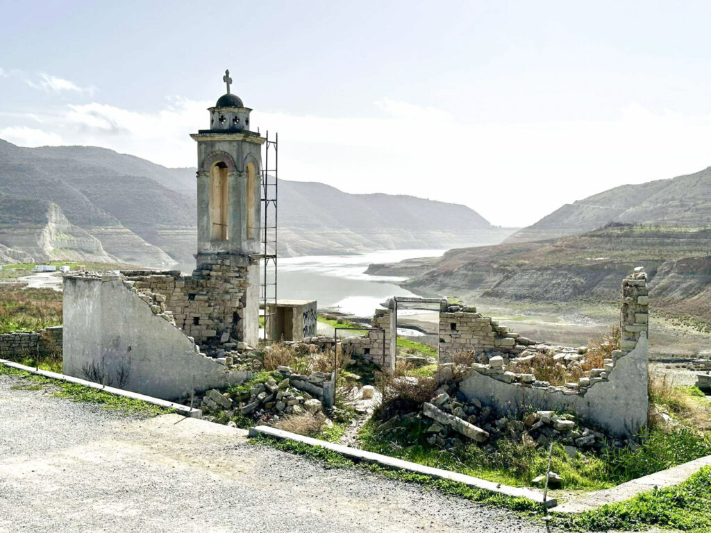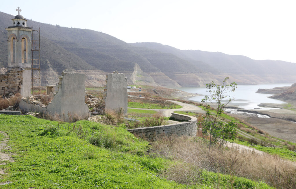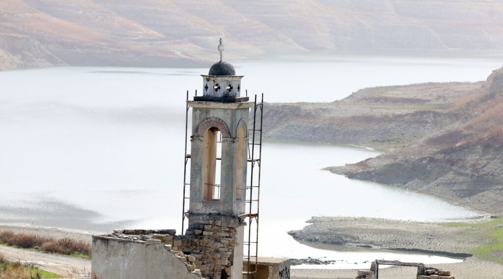 Την ίδια ώρα, οι εικόνες από τον Κούρη αποτυπώνουν ανάγλυφα το μέγεθος του προβλήματος, με χαρακτηριστικό παράδειγμα την εκκλησία του Αγίου Νικολάου, η οποία άλλοτε βρισκόταν βυθισμένη στα νερά του φράγματος και σήμερα αποκαλύπτεται πλήρως.
