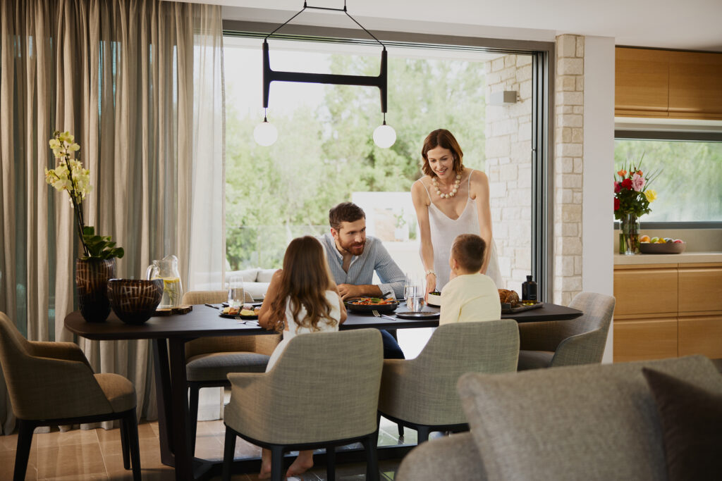 Στη συνέχεια αρχίζει να διαμορφώνεται η κατοικία. Κάποιοι επιλέγουν τη διαχρονική μεσογειακή αρχιτεκτονική των Minthis Signature Residences, ενώ άλλοι προτιμούν τη σύγχρονη αισθητική του Topos, όπου ο σχεδιασμός δίνει έμφαση στο φως και τον χώρο. Και οι δύο προσεγγίσεις βασίζονται στην ίδια φιλοσοφία: σεβασμό στο φυσικό περιβάλλον, χρήση φυσικών υλικών και διακριτική πολυτέλεια.